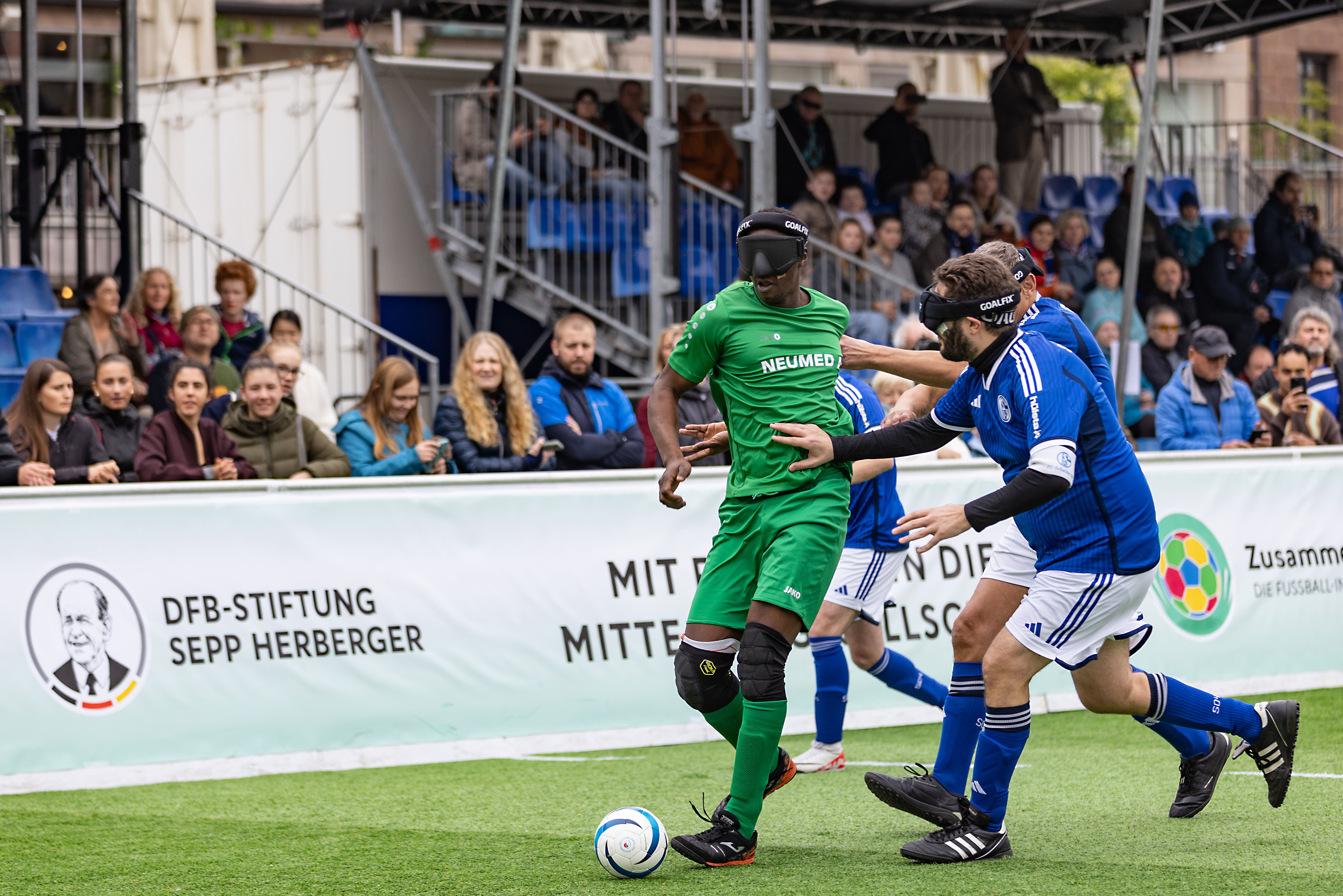 Zum finalen Showdown kommt es dann am Finalspieltag der Blindenfußball-Bundesliga am 11. und 12. September auf dem Kennedyplatz in Essen im Rahmen der Fußball-Inklusionstage der DFB-Stiftung Sepp Herberger (11. – 13. September 2026). In dem Stadion mit ca. 2.500 Tribünenplätzen mitten in der Essener Innenstadt wird dem Deutschen Meister 2026 im Blindenfußball dann die begehrte Meisterplakette überreicht.